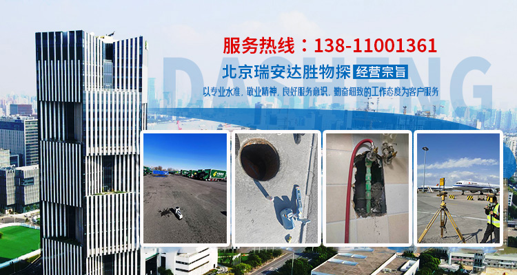 北京瑞安達勝物探技術(shù)有限公司成立于2012年,是一家管線探測、漏水檢測、地面空洞(塌陷、病害)檢測等業(yè)務的企業(yè)。公司自成立以來一直為各市政單位、開發(fā)商、設計單位、物業(yè)小區(qū)、學校、工廠等企事業(yè)單位提供:地下管線定位探測、漏水檢測、地質(zhì)勘測、資源勘探等業(yè)務。
